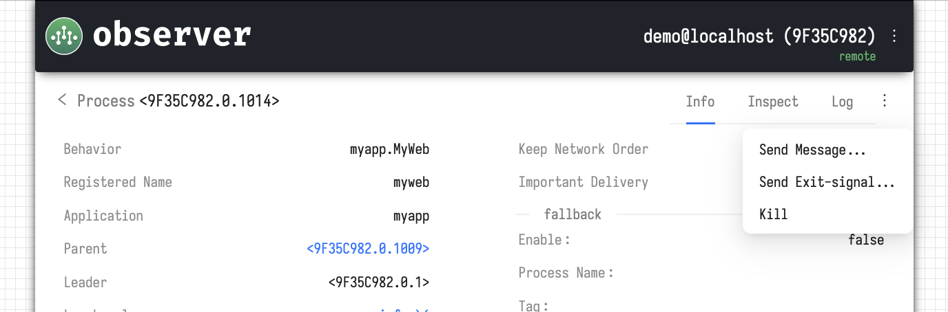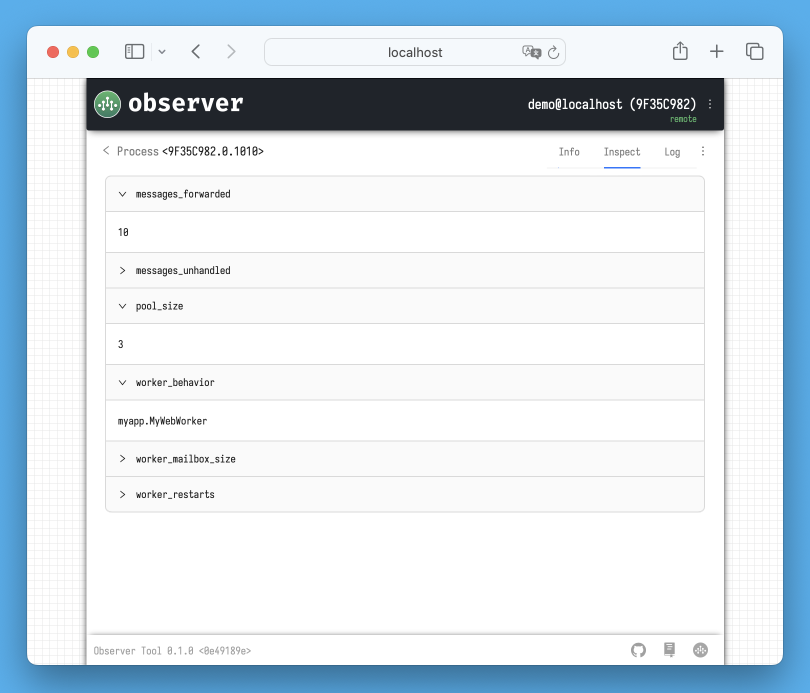 If the *behavior* of this process implements the `HandleInspect` method, the response from the process to the inspect request will be displayed here. The Observer sends these requests once per second while you are on this tab.