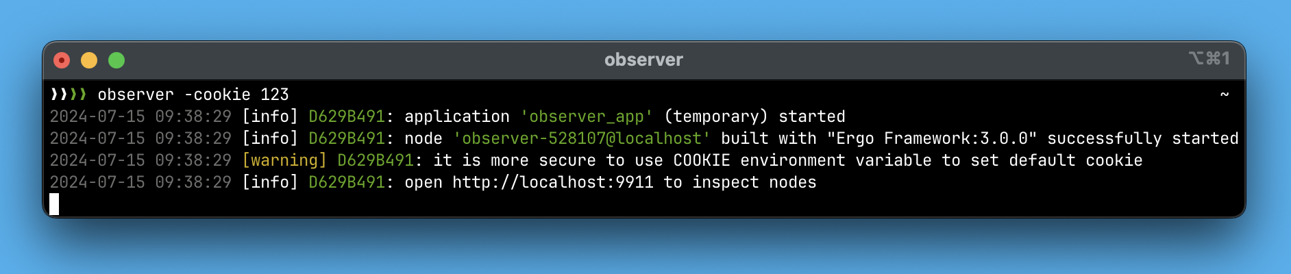 If you are running o`bserver` on a server for continuous operation, it is recommended to use the environment variable `COOKIE` instead of the `-cookie` argument. Using sensitive data in command-line arguments is insecure.