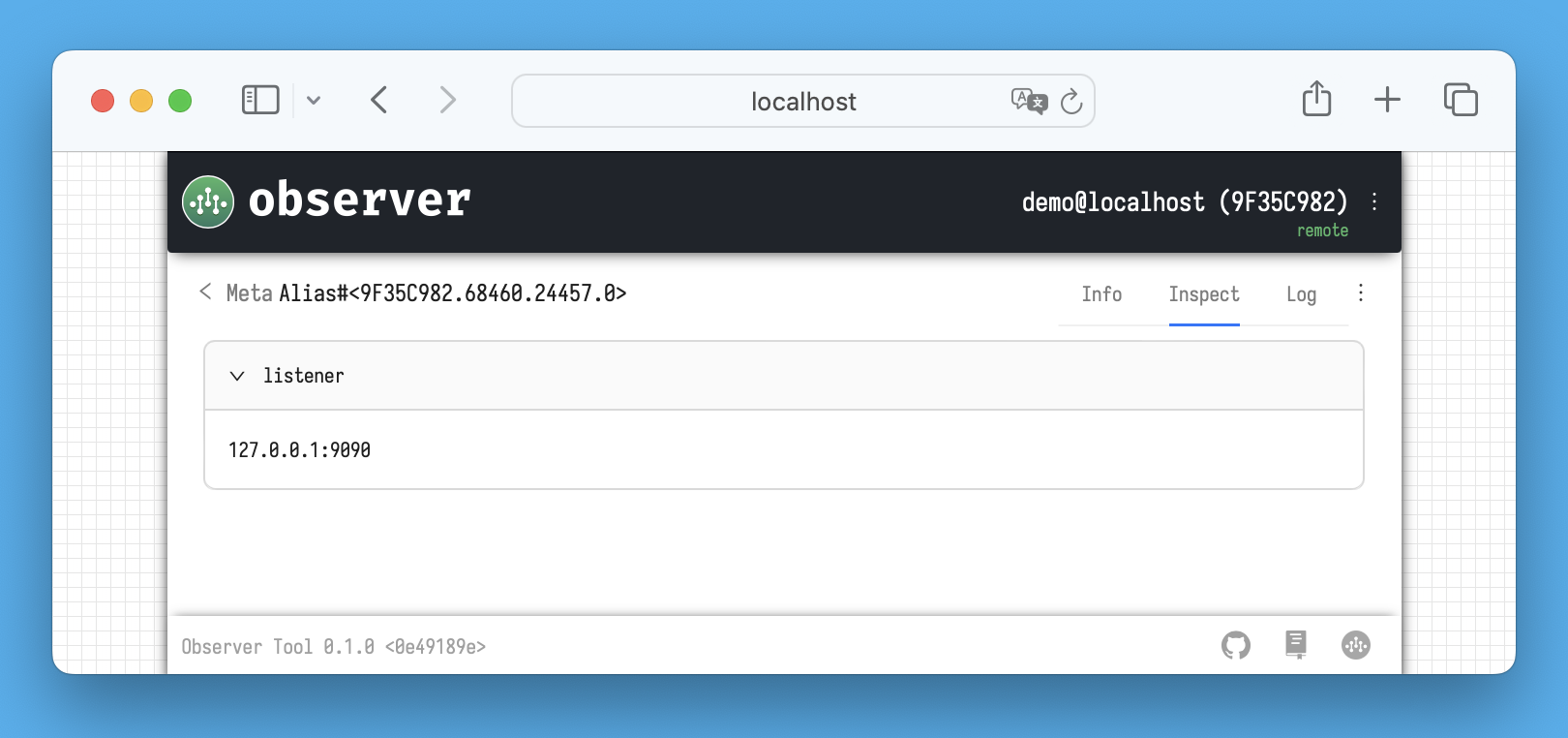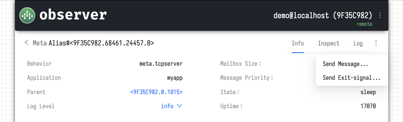 If the meta-process's *behavior* implements the `HandleInspect` method, the response from the meta-process to the inspect request will be displayed on this tab. The Observer sends this request once per second while you are on the tab.
